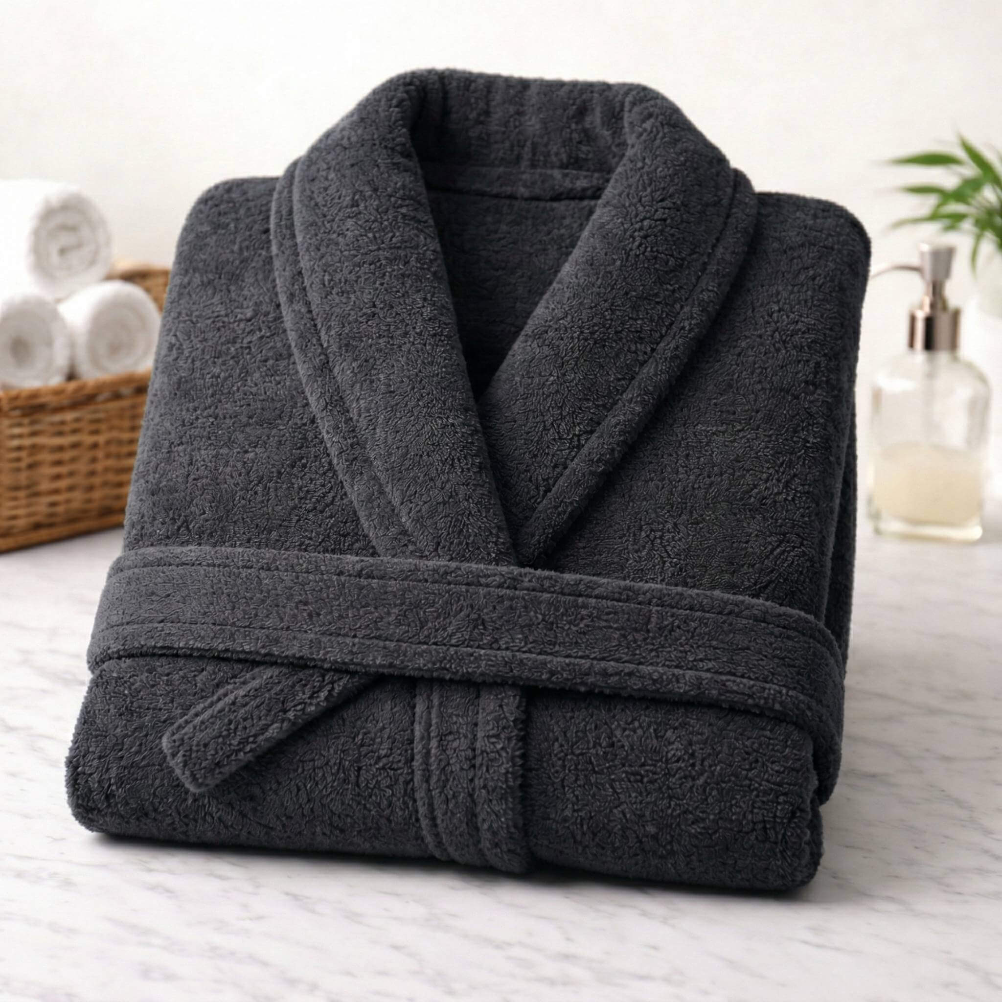 Tento vysoce kvalitní župan je ideální pro hotely, lázně i domácí použití a nabízí měkký pocit, který zajistí maximální pohodlí po koupeli, sprše nebo plavání. Elegantní šálový límec dodává rafinovaný nádech, zatímco antracitová barva umocňuje jeho luxusní vzhled.