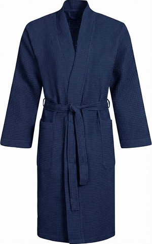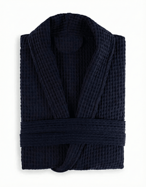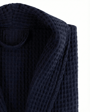 Luxusní tmavě modrý župan z prémiové bavlny Waffle